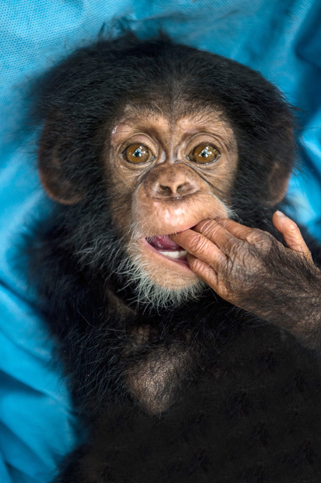 Cría de chimpancé en rehabilitación